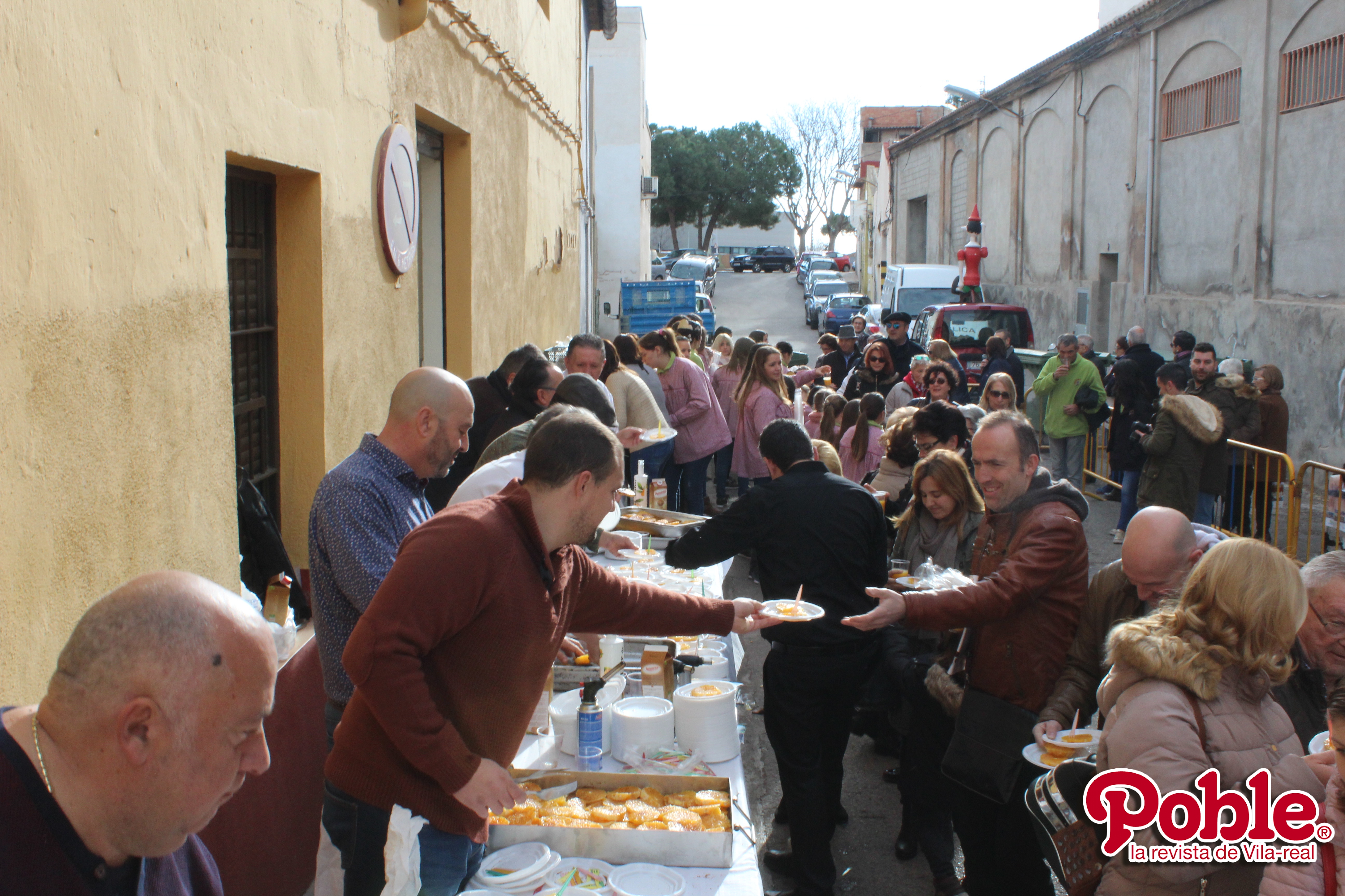 Quan havia passat una hora i mitja des de l’inici del repartiment, encara els més ressagats arreplegaven un dels més de 3.000 entrepans que s’han elaborat i repartit per part dels membres de la Junta Local Fallera, al costat dels prop de 150 litres de vi que s’han distribuït gràcies al treball dels operaris de Via Pública. Al costat d’ells, els membres de l’Associació d’Hostaleria de Borriana repartien d’altres racions de taronja flamejada, unes postres que per primera vegada s’ha repartit també entre tots els assistents. I mentre les últimes persones reunides en el carrer Sant Blai arreplegaven el seu esmorzar, just al costat els xiquets i xiquetes podien gaudir d’una altra de les novetats de la jornada, ja que les persones participants en el taller d’Animació Riu Anna oferien tallers i jocs al costat de la Font del Vi.