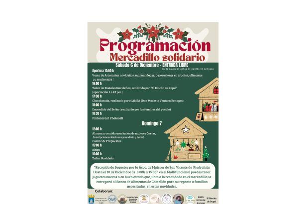 Cortes de Arenoso organiza su tradicional Mercadillo Solidario de Navidad