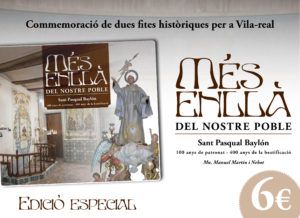 L’edició especial de ‘Més enllà del nostre Poble’ commemora dues fites històriques per a Sant Pasqual i Vila -real: 100 anys de patronat i 400 anys de la beatificació. Tal com diu Manuel Martí n i Nebot, autor del llibre, en el pròleg del mateix: “Calç no oblidar que el nostre poble, Vila -real, i la manera de ser dels seus habitants, dels vila-realencs i vila-realenques, no s’entendria sense la influència que el Sant, Sant Pasqual, ha tingut al llarg de la seua història”.