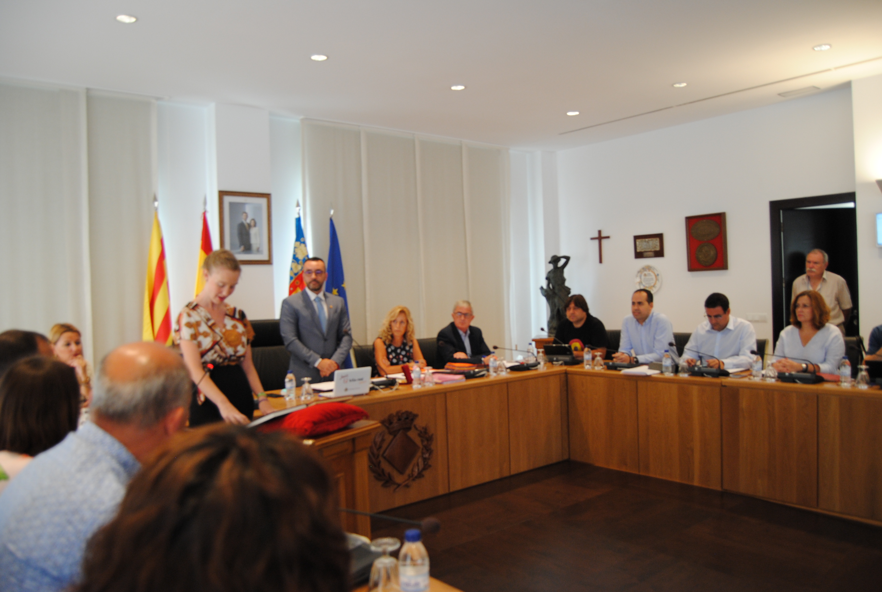 Durant el Ple, la nova regidora de Compromís, Maria Fajardo, ha promés el seu càrrec, després de la marxa de María Dolores Parra a la Direcció General d’Internacionalització de la Conselleria d’Economia.