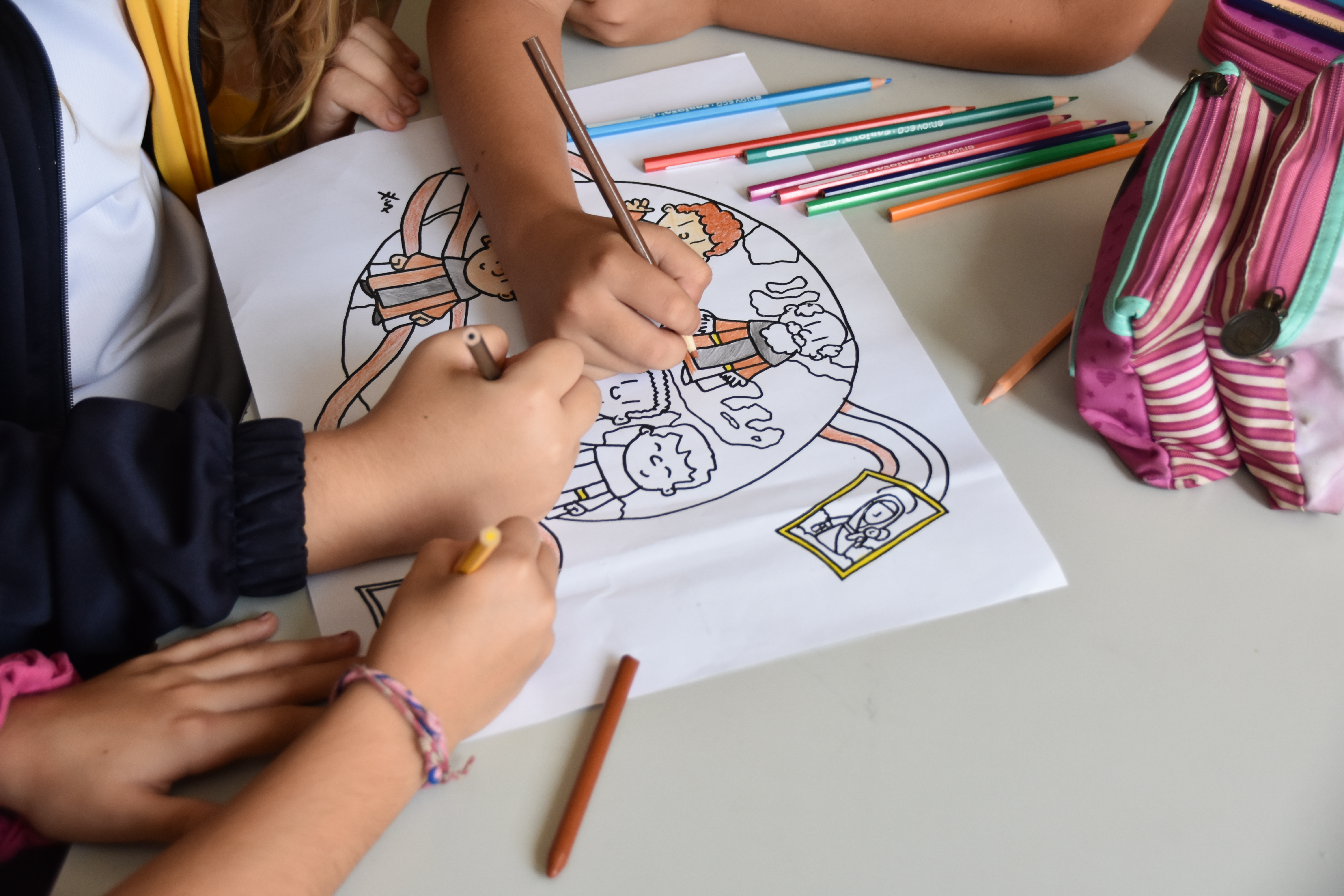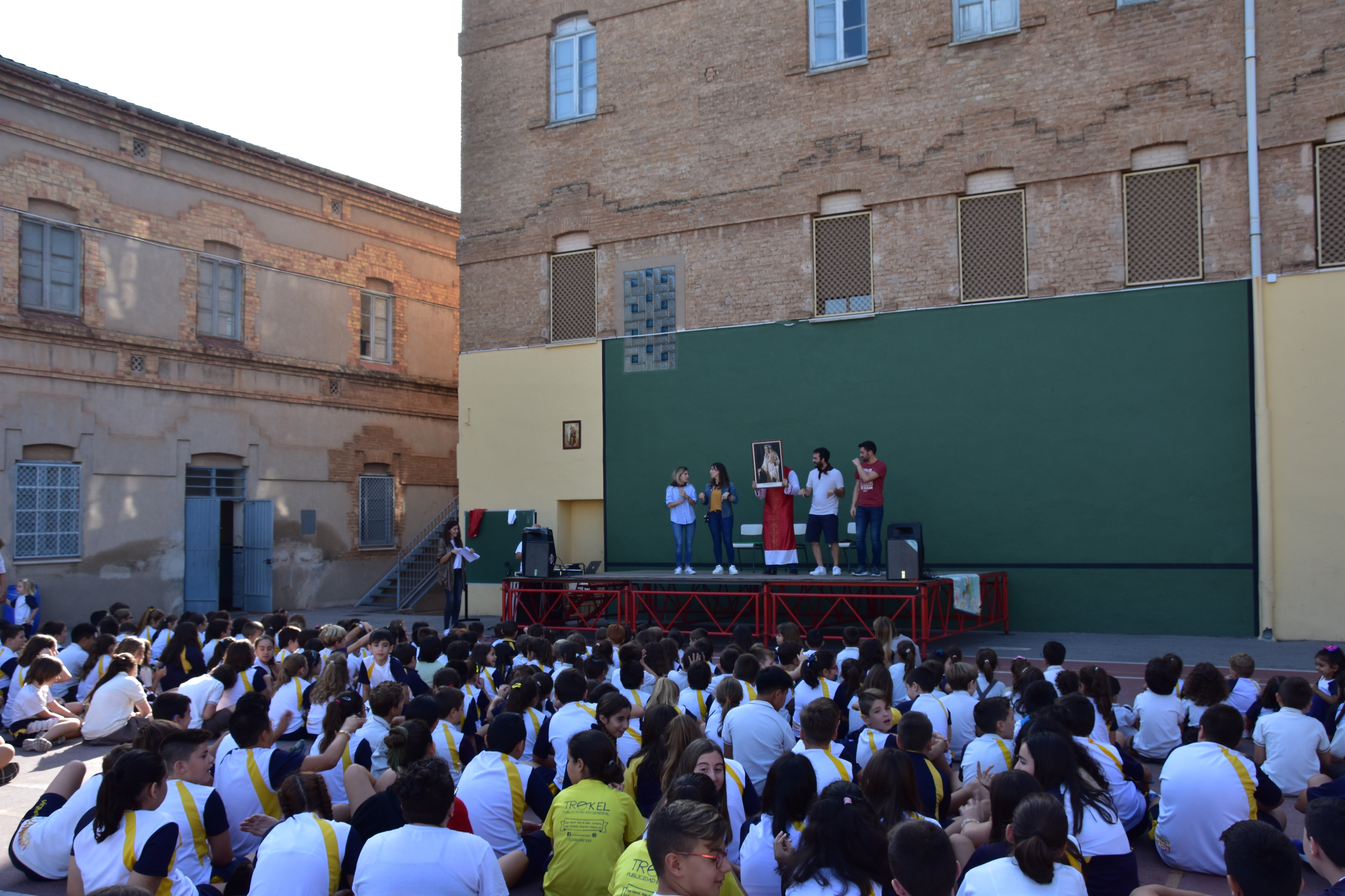La jornada se inició en el patio de infantil con una oración conjunta, en la que pudieron participar las familias. Los alumnos de secundaria se encargaron de preparar y decorar todos los espacios que se iban a usar durante el día.
