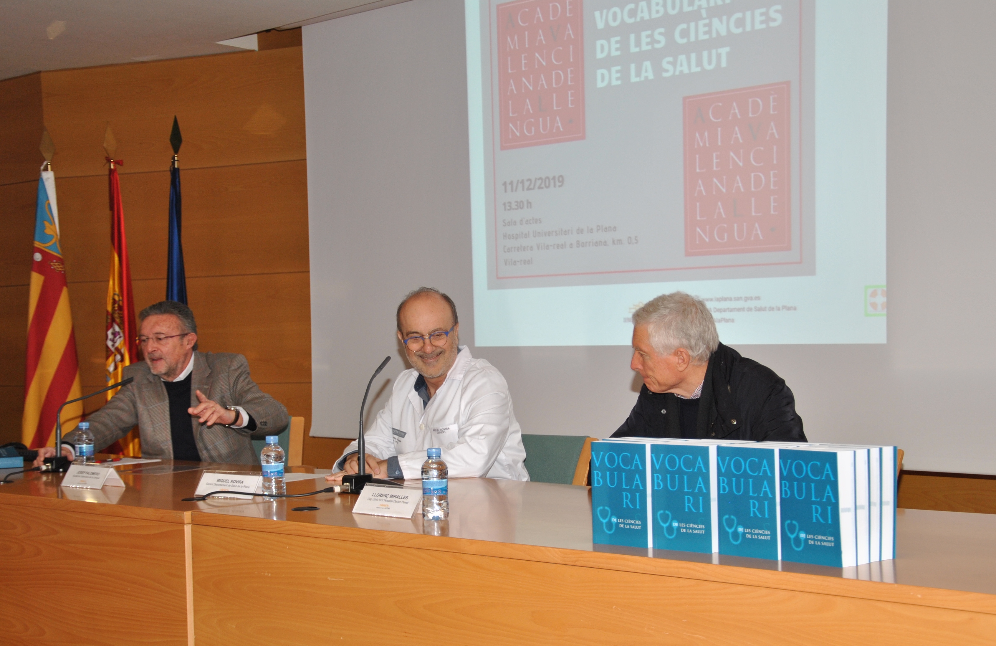 La Academia Valenciana de le Lengua ha presentado hoy en el Hospital Universitario de la Plana el ‘Vocabulario de Ciencias de la Salud’ en un acto dirigido por el académico Josep Palomero, el médico Llorenç Miralles y el gerente del Departamento de Salud de la Plana, Miquel Rovira .