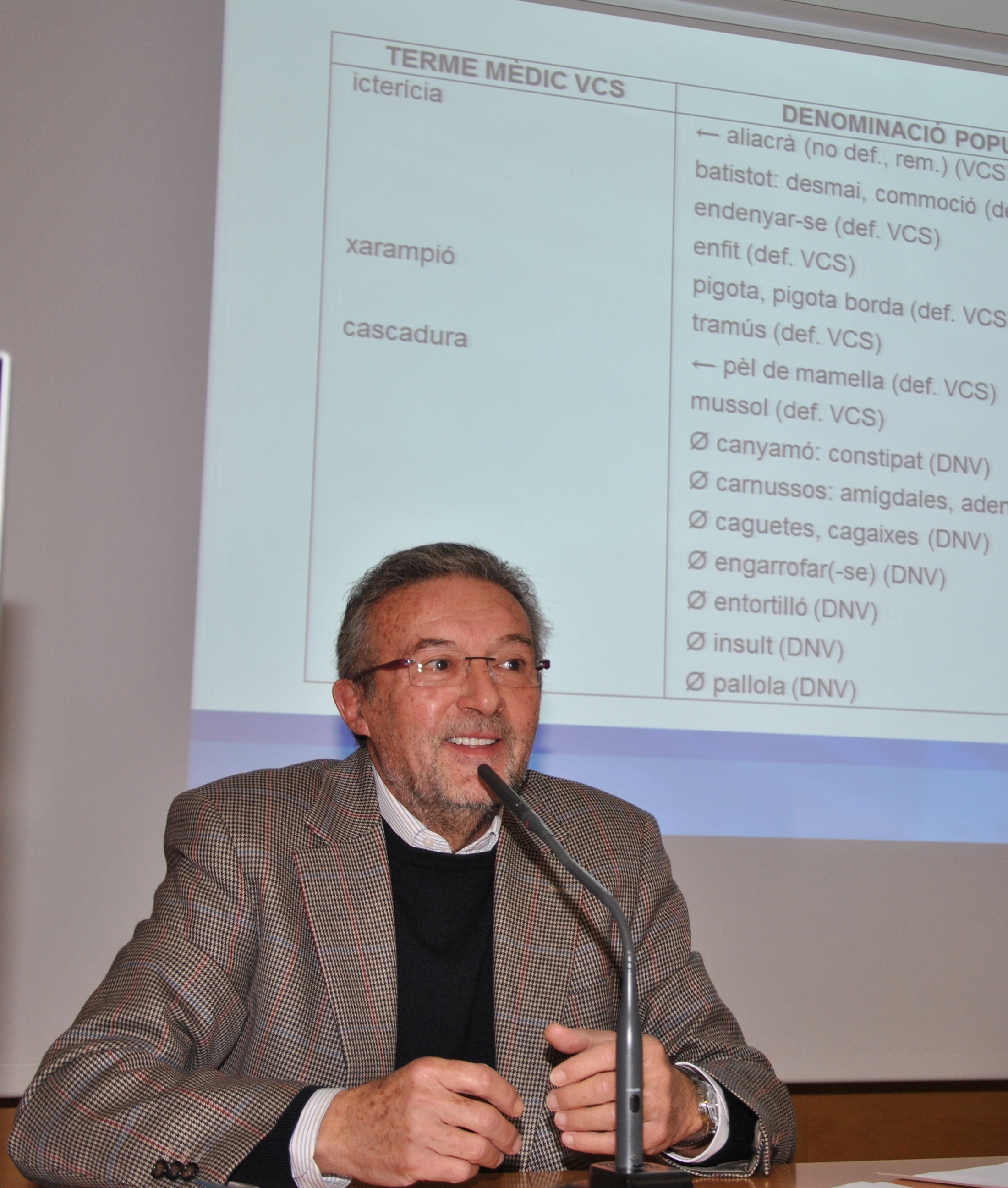 Durante la presentación de esta obra, que recoge el léxico específico relativo a las ciencias de la salud, se han destacado palabras que nombran patologías en valenciano y que están recogidas en este trabajo, como pigota (sarampión), aliacrà (ictericia), batistot (desmayo) o mussol (orzuelo), comúnmente utilizadas por la población de este Departamento.