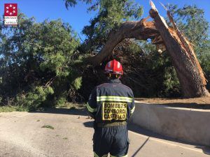 Des de ben entrada la matinada d’aquest dilluns, el cos de bombers ha realitzat 12 serveis relacionats amb la retirada d’arbres, set per incidències en teulades, cinc per sanejament de façanes i quatre per incendis en vegetació. No s’ha comptabilitzat cap ferit però sí que es preveu que els danys materials siguen considerables.