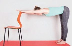 Seguiremos con un ejercicio, busca estirar tanto la parte de atrás de las piernas como la espalda. Podemos realizarlo con una silla o apoyándonos de la pared, lo importante es mantener las piernas en un ángulo recto y no curvar la espalda. Si es necesario al principio doblar un poco las rodillas.