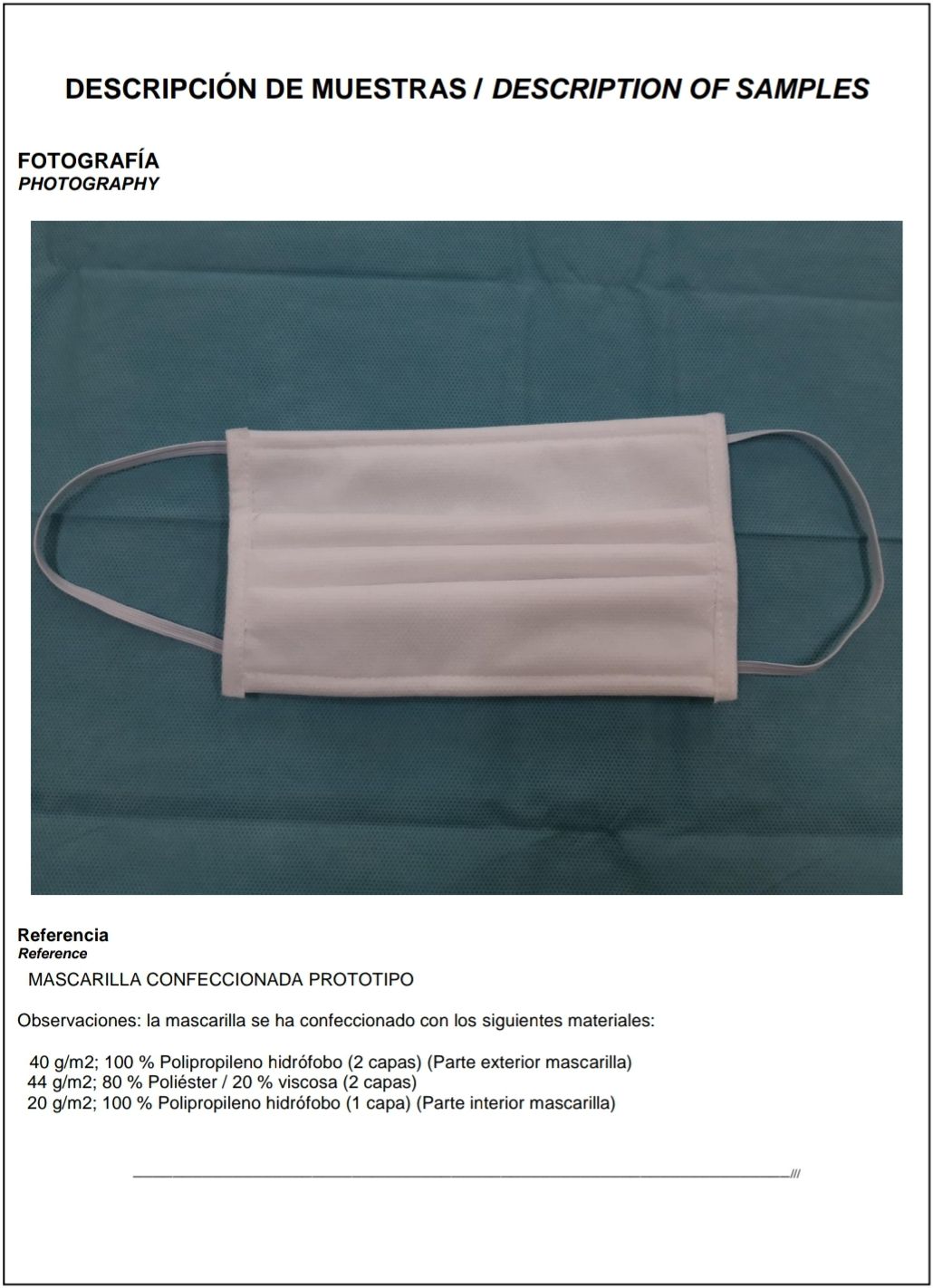 En concret, els assajos realitzats per Aitex en el material de les mascaretes s’han centrat en tres paràmetres: determinació in vitro de l’eficàcia de la filtració bacteriana (BFE), la respirabilitat (pressió diferencial) i la pressió de la resistència a les esquitxades.