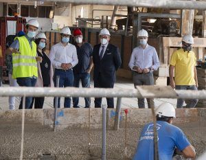 El president de la Diputació, José Martí, i els diputats de Cultura i Promoció Ceràmica, Ruth Sanz i Ximo Huguet, han visitat aquest matí aquest històric recinte industrial per a supervisar el desenvolupament de les obres, represes fa poc després de l’aturada decretada per l’estat d’alarma.