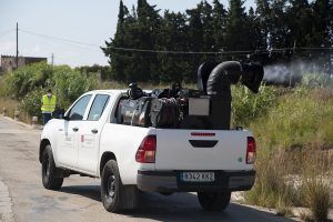 María Jiménez s’ha desplaçat fins a Vinaròs amb motiu del primer tractament realitzat en zones no urbanes del seu terme municipal, després de la recent adhesió d’aquest ajuntament al Pla Provincial Contra els Mosquits. Sobre aquest tema, l’alcalde Guillem Alsina ha explicat que els tractaments de la Diputació serviran de reforç als quals practica l’empresa que té contractada l’ajuntament en les zones urbanes del terme.