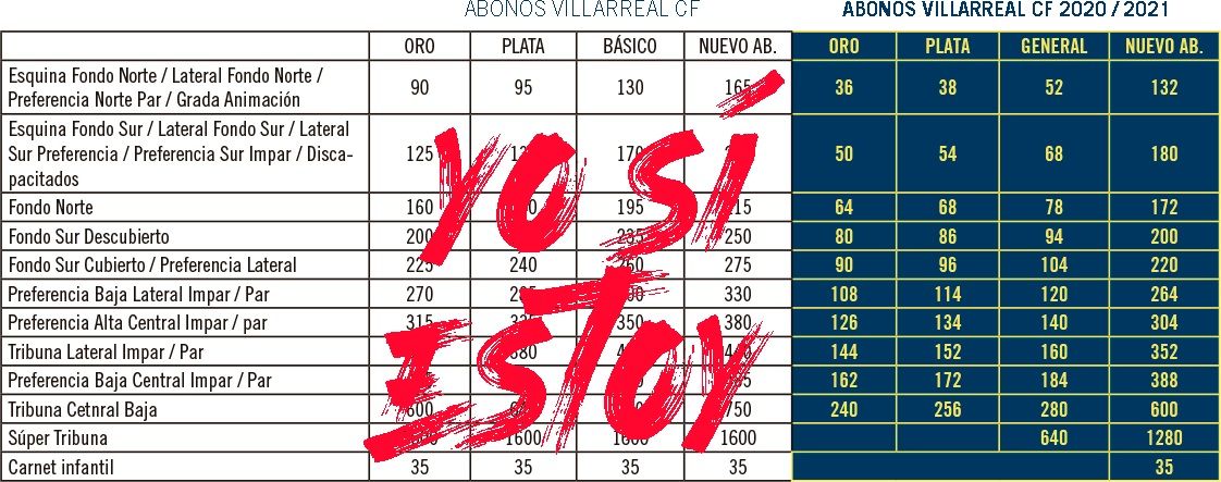 - OPCIÓN 3. Los aficionados que quieran ser nuevos abonados del Villarreal CF tendrá un 20% de descuento con respecto a la campaña anterior en su carnet para la temporada 2020/21.