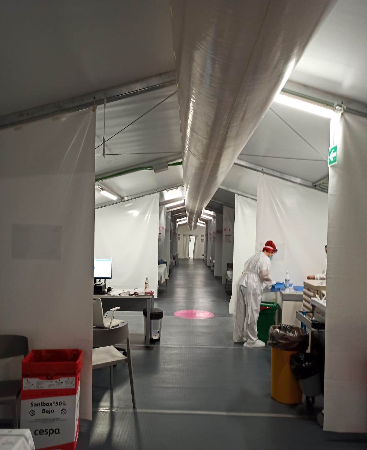 El hospital de campaña está conectado a los bloques principales del Hospital General a través de un ‘finger’ o pasillo que llega directamente al Servicio de Urgencias.