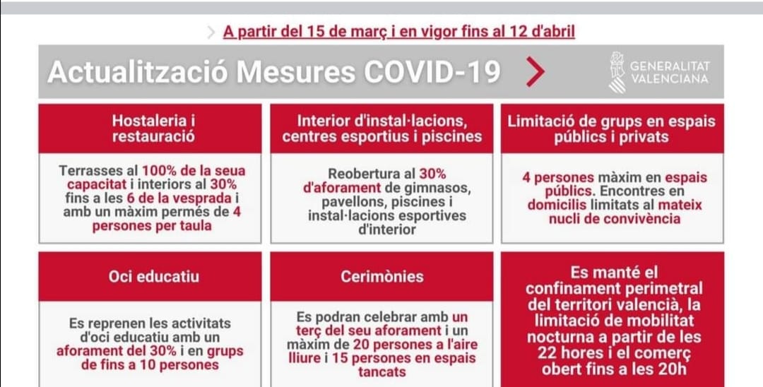La resta de mesures, que estaran en vigor fins al 12 d’abril, són les que vénen reflectides en la imatge inferior.