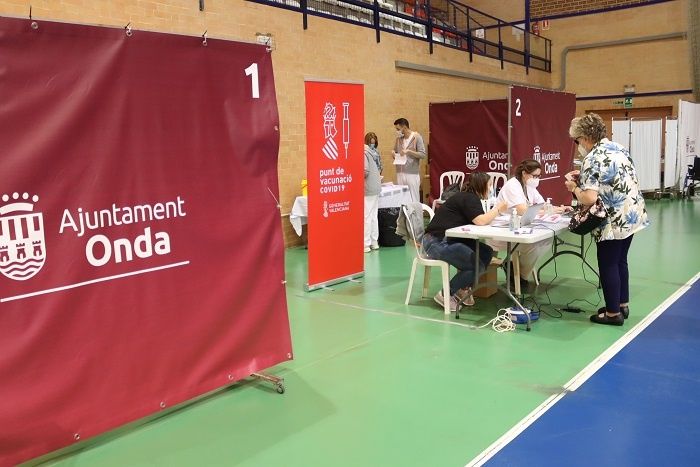 A las 15 horas ha arrancado la vacunación masiva en el pabellón Víctor Cabedo de Onda, instalación municipal por la que pasarán centenares de ondenses y vecinos de pueblos colindantes a lo largo de los próximos días para suministrarles la dosis correspondiente.