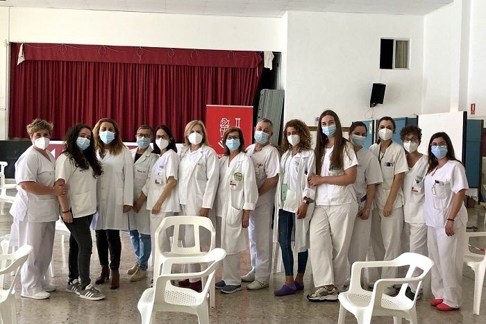 En el centro social de San Felipe trabajan 14 profesionales sanitarios durante la campaña de vacunación masiva, que esta semana supondrá la inoculación de un millar de dosis en la población. Al frente están la coordinadora de los centros de salud, Gemma Monforte Gilabert, y la directora de enfermería, Maribel Bellés Carregui.
