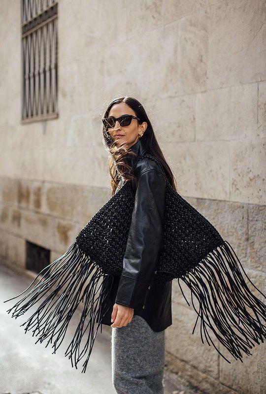 - Los flecos – Esta temporada se llevan los flecos en todo tipo de prendas, desde los bolsos hasta las faldas, sin duda eligiendo los flecos acertarás de pleno. Si eres un poco más sencilla puedes optar por un bolso de flecos como complemento a tu look.