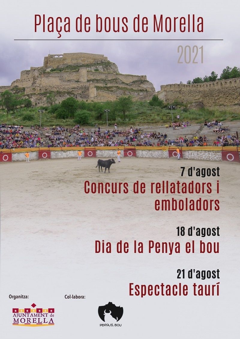 Morella ha començat a organitzar les activitats culturals i festives de l’estiu amb la reunió amb les associacions de la ciutat i els diferents encontres amb cadascuna d’elles. Així, l’Ajuntament de Morella amb la col·laboració de la penya El Bou han plantejat diferents actes taurins durant el mes d’agost. El primer serà el 7 amb un concurs de retalladors i emboladors, el segon està previst el 18 quan la penya celebra el seu dia i el tercer està previst per al 21 d’agost. Tots ells seran a la plaça de bous de Morella amb l’aforament i les mesures sanitàries per a previndre la COVID-19.