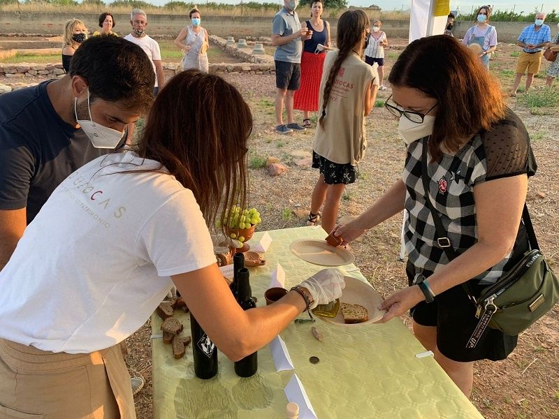 De la ma d’Arqueocas i amb la col·laboració de la regidoria de Patrimoni de l’Ajuntament de Nules els visitants varen poder gaudir d’una visita guiada amb una arqueòloga especialitzada en el món romà que, a més, incloïa el tast de productes elaborats de la mateixa forma que es feien a l’antiga Roma.