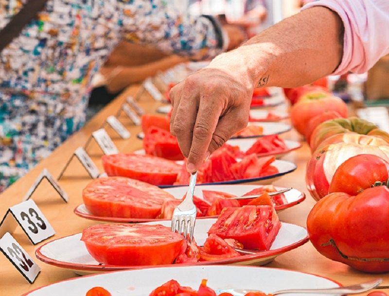 Los tomates de penjar de Castelló ganan el II Concurso de Millor Tomata de Dénia que se celebraba en el mercado gastronómico los Magazinos de la ciudad como homenaje al agricultor local. Quique Dacosta, Aludena Ortuño, periodista gastronómica de Guía Hedonista o Maria Diago directora de la Guía Sustentable eran algunos de los jurados que han catado los tomates procedentes de todas partes de la Comunitat Valenciana.