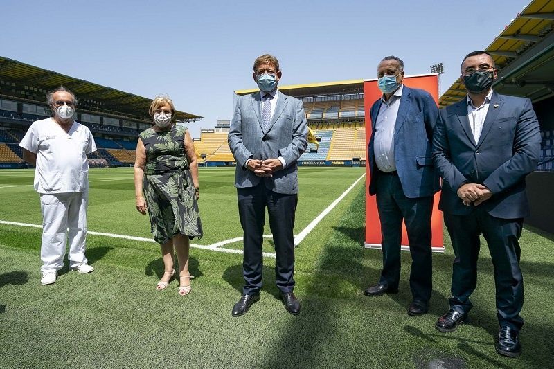L’alcalde de Vila -real visita el punt de vacunació situat en l’Estadi de la Ceràmica al costat del president de la Generalitat Valenciana, Ximo Puig , i el president del Villarreal CF, Fernando Roig