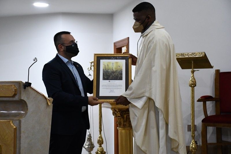 Després de la celebració eucarística, a la qual han assistit regidors de la corporació municipal, l’alcalde de Vila -real, José Benlloch, li ha lliurat una al·legoria de la ciutat en agraïment per a la seua labor a la ciutat, en especial pel seu treball d’ajuda a la comunitat i d’integració al barri.