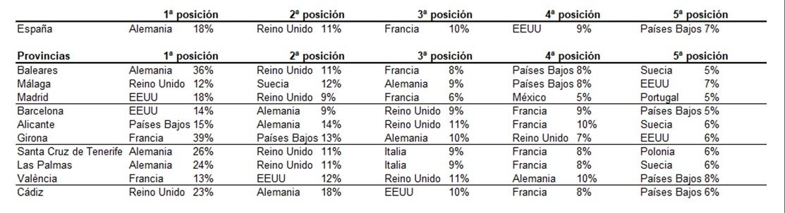 El quinto lugar es para la provincia de Alicante, que acumula el 8% de las búsquedas de lujo que se producen en España por parte de extranjeros. Los neerlandeses son los más activos (15%), seguido por alemanes (14%), británicos (11%), franceses (10%) y suecos (6%).