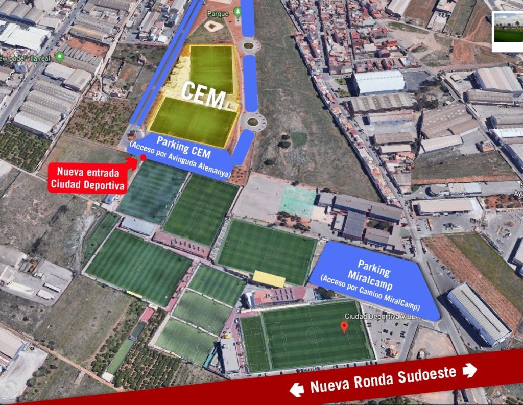• Se habilitará dos accesos a la Ciudad Deportiva. Los aficionados podrán acceder a las instalaciones del club por el parking ubicado en Camí Miralcamp y también por el parking de la Ciutat Esportiva Municipal CEM de Vila -real.