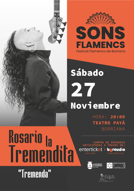 Per la seua banda, el 27 de novembre a les 20 hores ‘La Tremendita’ oferirà un dels plats forts del festival amb Tremenda, una proposta trencadora en què Rosario mescla tradició amb electrònica, jazz i traços psicodèlics. Rosario demostra una vegada més que és una de les grans renovadores del flamenc actual i una icona contemporània de l’art jondo.