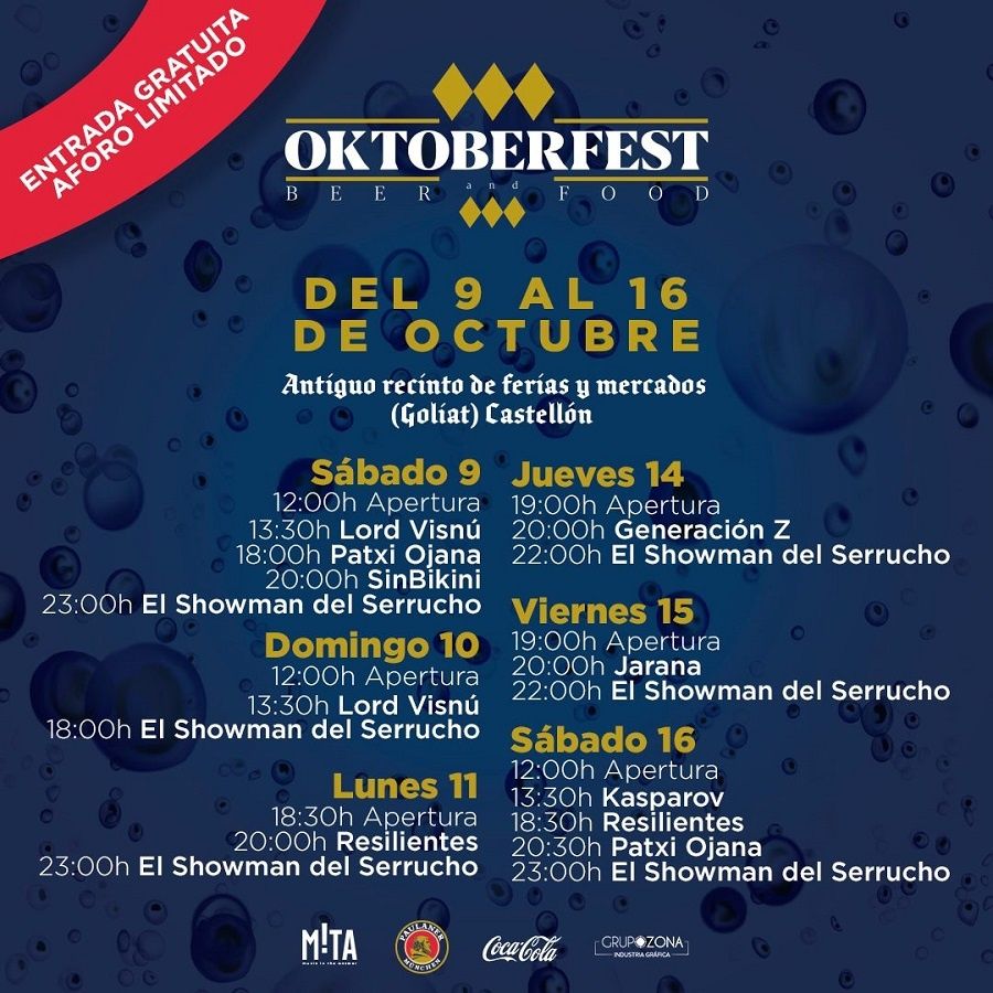 “Trasladamos a Castellón esta fiesta popular alemana mezclada con el sabor de la más pura gastronomía germánica, pero también de la argentina y de los grupos castellonenses con más tirón. Va a ser una mezcla de sabores y música que hará disfrutar al máximo a todos los que nos acompañen», ha señalado Sánchez , quien ha destacado que el evento cumplirá con todas las medidas de los protocolos frente al Covid para garantizar un ocio seguro. El evento cuenta además con la colaboración del Grupo Zona, Coca-Cola y el Ayuntamiento de Castellón.