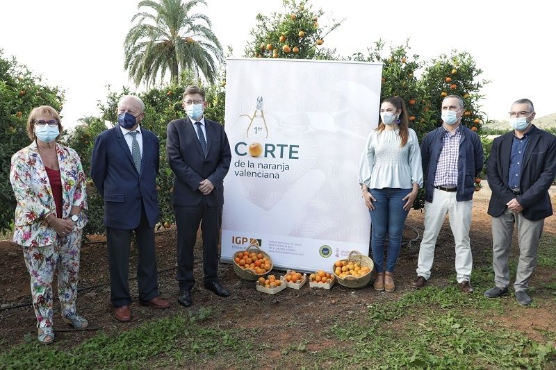 – El president ha participado en Picassent en el primer corte de la naranja valenciana junto a la consellera de Agricultura, Mirella Mollà