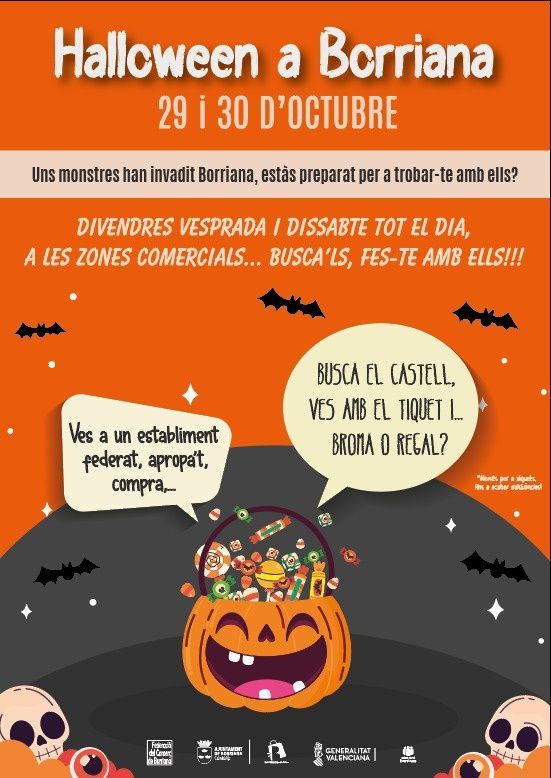 L’Ajuntament de Borriana, en col·laboració amb la Federació de Comerç, ha organitzat per al proper cap de setmana, el divendres 29 i el dissabte 30, unes jornades de dinamització comercial al voltant de la festa d’Halloween.