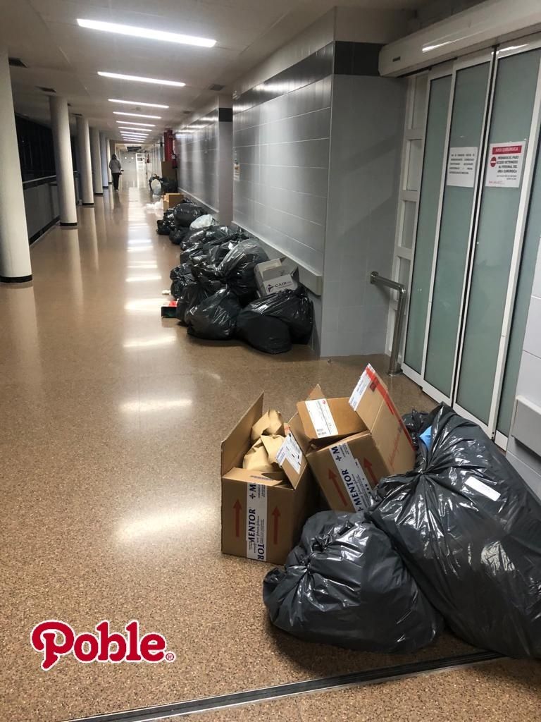 Encara que està previst el compliment dels serveis mínims, ja es poden veure i notar algunes situacions d’acumulació de basura pels corredors dels hospitals.
