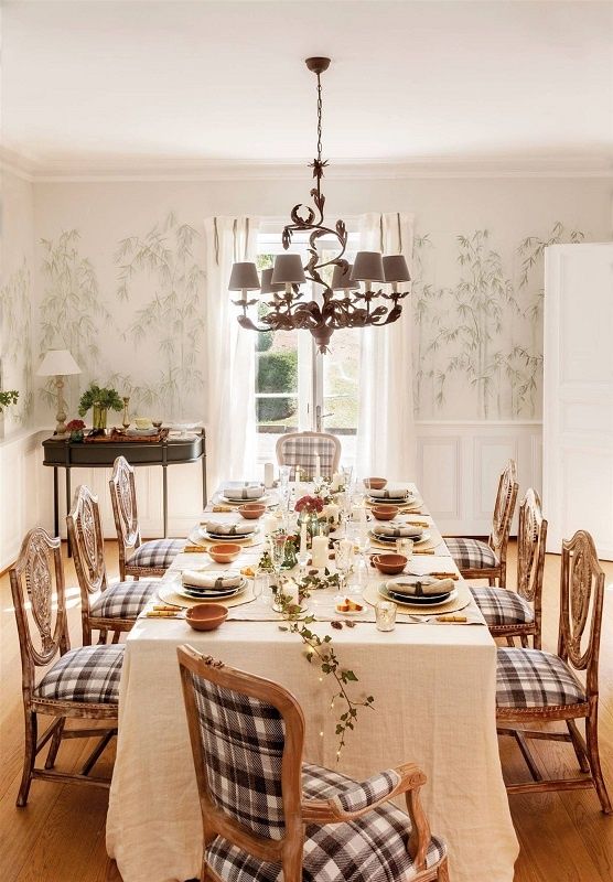Los adornos en blanco y gris podrán darle a tu casa un aspecto muy neutro, pero a la vez muy cálido si lo combinamos con esos colores más ocres. El color rosa es otro de los colores de moda que puedes utilizar por ejemplo en los servilleteros a juego con una cubertería en dorado. Si junto a las guirnaldas botánicas como centro de mesa le añadimos a las sillas coronas de abeto, conseguirás un conjunto de acierto total siempre y cuando tu perspectiva sea más tradicional. Si no, siempre puedes apostar por flores o colores más alegres.