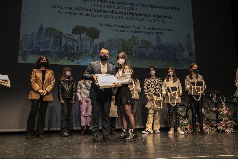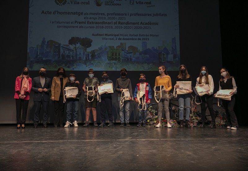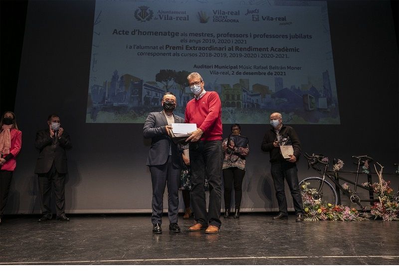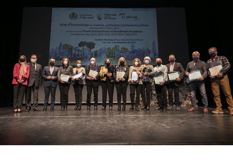 Vila -real ha celebrat hui l’acte d’homenatge als docents jubilats en 2020 i 2021 així com el lliurament dels Premis Extraordinaris al Rendiment Acadèmic de Primària i Secundària dels cursos 2019/20 i 2020/21. L’acte, que s’emmarca en les activitats amb motiu del Dia Mundial de la Ciutat Educadora, ha comptat amb la presència de l’alcalde, José Benlloch, la regidora d’Educació, Aida Beteta, i altres membres de la corporació municipal. Aquest acte de reconeixement a alumnes i docents es recupera després que en 2020 no es poguera celebrar per la pandèmia.