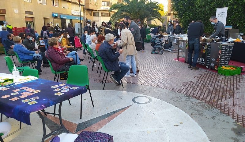 D’altra banda, el mercat ha acollit la jornada Gastro Taronja, que ha comptat amb tallers que han ensenyat els cultius de la terra, tastos de varietats autòctones amb el sommelier David Remolar i l’agricultor Esteban Gimeno, i que ha culminat amb una demostració culinària en directe amb el títol Taronja al salat, de la mà de Nicolás Barrera i Fernando Huguet, que han elaborat un escabetx de carxofa i verat amb mandarina.