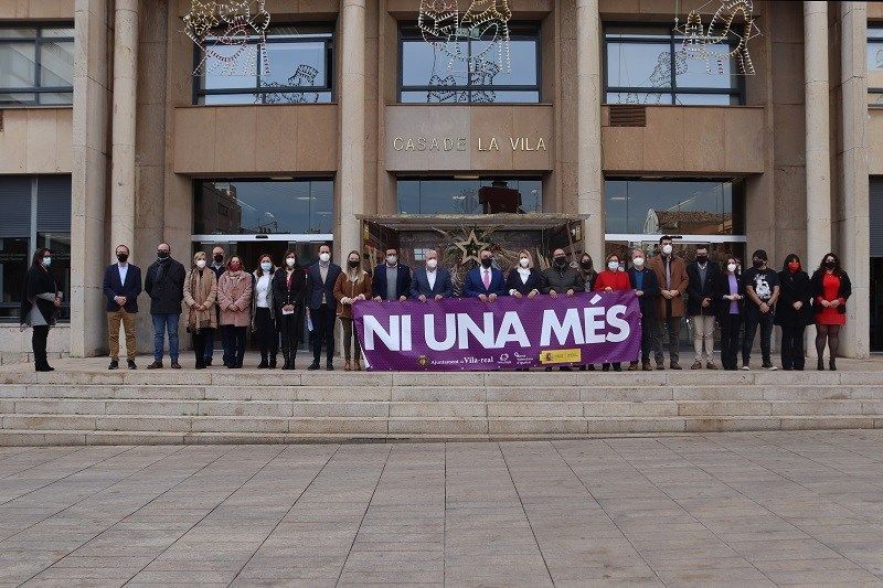 La sessió plenària s’ha interromput durant uns minuts perquè els membres de la corporació participaren en la concentració convocada a les portes del consistori per a condemnar l’assassinat masclista d’una dona a Torrevieja.