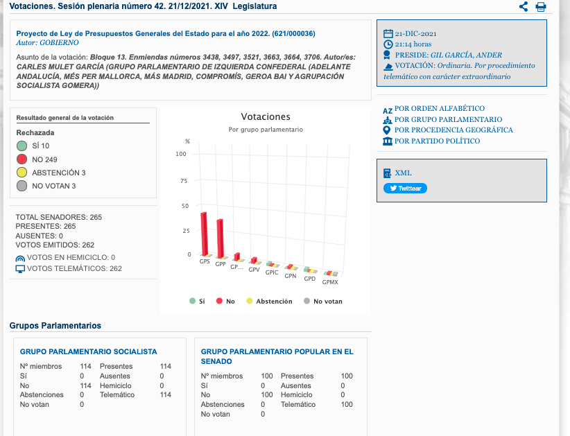L’esmena núm. 3663 de Compromís per a exigir una important partida per a lluitar contra les plagues que assola al camp valencià, no van tirar avant, en comptar amb el vot en contra de PSOE, PP, ERC-BILDU, PNB i JUNTS i només sumar als grups de l’Esquerra Confederal en el qual s’integra Compromís, i sumar a Ciutadans i Teruel Existe.