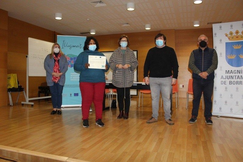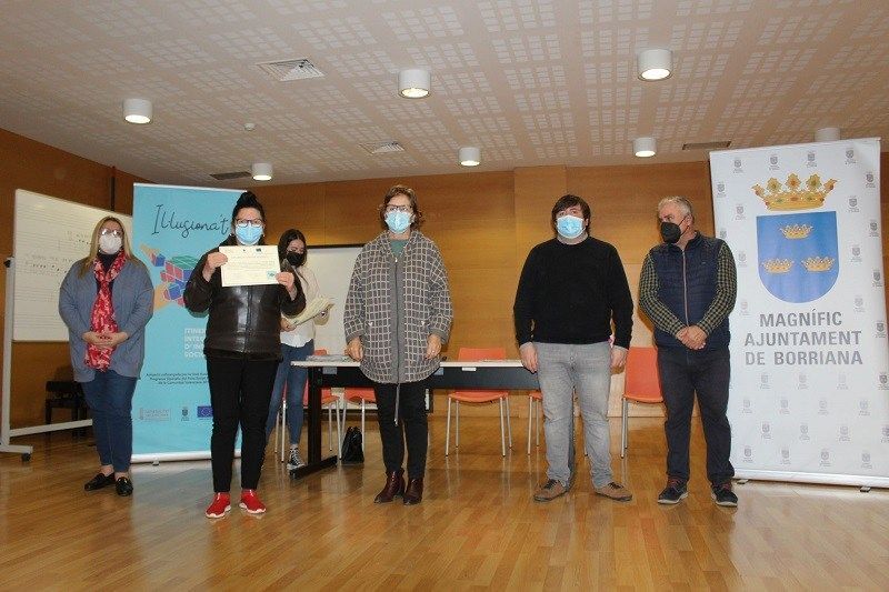 L’alcaldessa de Borriana, Maria José Safont, ha participat a l’Auditori Juan Varea en l’acte de clausura de la segona edició del Projecte Il·lusiona’t. Un programa d’inclusió social i inserció laboral que ha comptat amb una inversió de prop de 134.000 euros cofinançats per la Generalitat i el Fons Social Europeu, i que s’ha centrat en persones beneficiàries de la Renda Valenciana d’Inclusió i especialment en dones del barri de la Bosca.