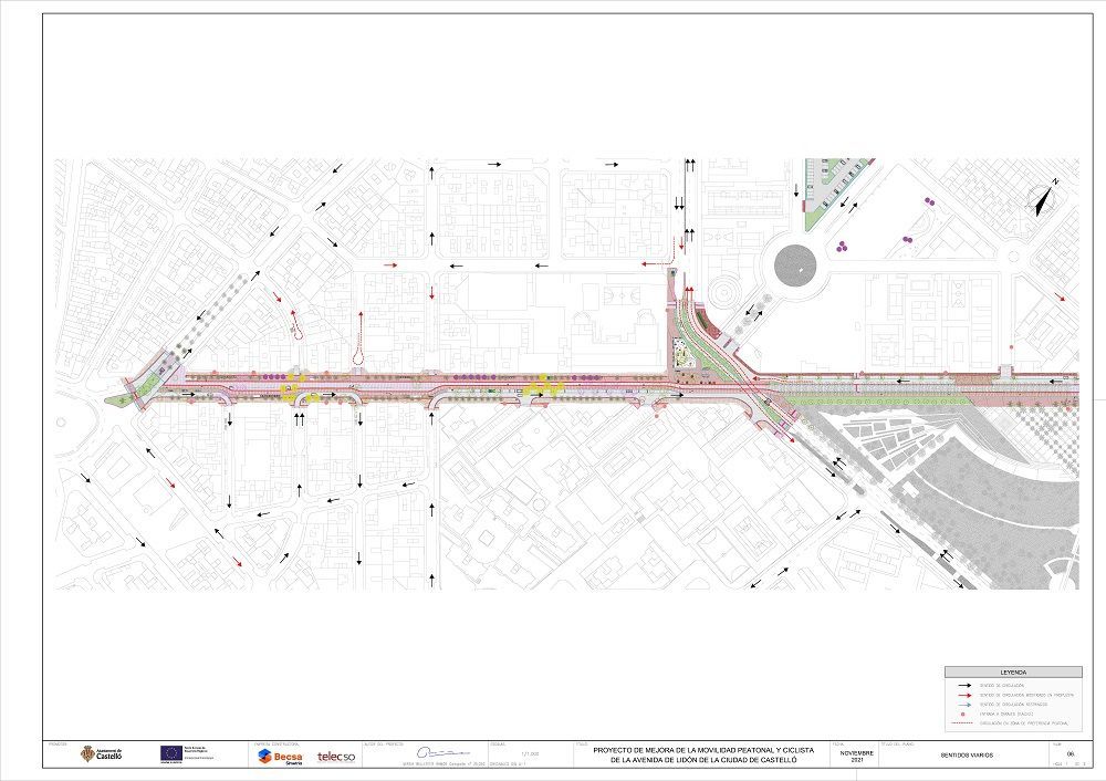 Quant a l’ordenació del trànsit, el projecte preveu que tota l’avinguda siga zona prioritària per al vianant, incloent un carril bici al llarg del recorregut, des de la plaça Maria Agustina a la Basílica de la Mare de Déu del Lledó, i evitant que el trànsit siga continu, de manera que no siga una via ràpida d’entrada i eixida de la ciutat, incorporant per a això elements que contribueixen a reduir la velocitat i a pacificar el trànsit. En aquest sentit, la reforma divideix l’ordenació de l’avinguda en tres trams i en tots ells es garanteix l’accés de vehicles de residents, d’emergències i de serveis urbans.