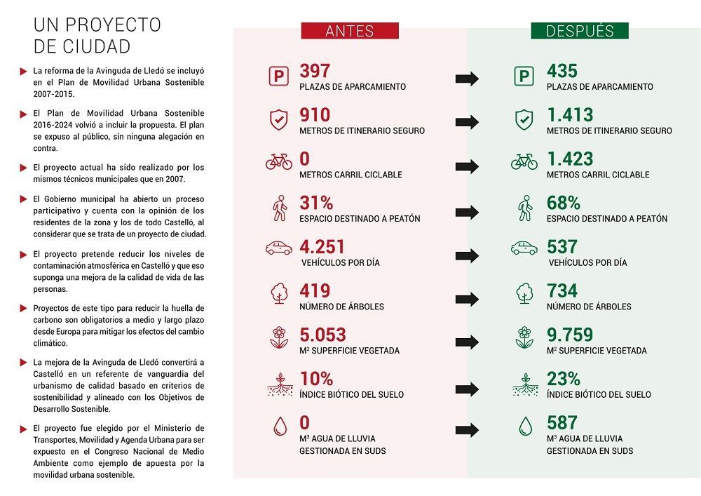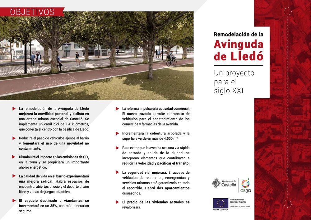 Amb l’objectiu d’acostar tots els detalls i l’impacte ambiental, social i econòmic del projecte a la ciutadania i a la vintena d’entitats que han ajudat a teixir-lo a través d’un ampli procés participatiu, en els pròxims dies s’organitzarà una jornada informativa. En aquesta reunió es traslladarà a residents, comerciants i ciutadania en general la informació relativa a la millora de l’avinguda Lledó, que convertirà a Castelló en referent d’avantguarda de l’urbanisme de qualitat basat en criteris de sostenibilitat. Així mateix, s’ha enviat informació als veïns amb les característiques bàsiques de la millora de l’avinguda Lledó, perquè siguen coneixedors de primera mà d’aquesta.