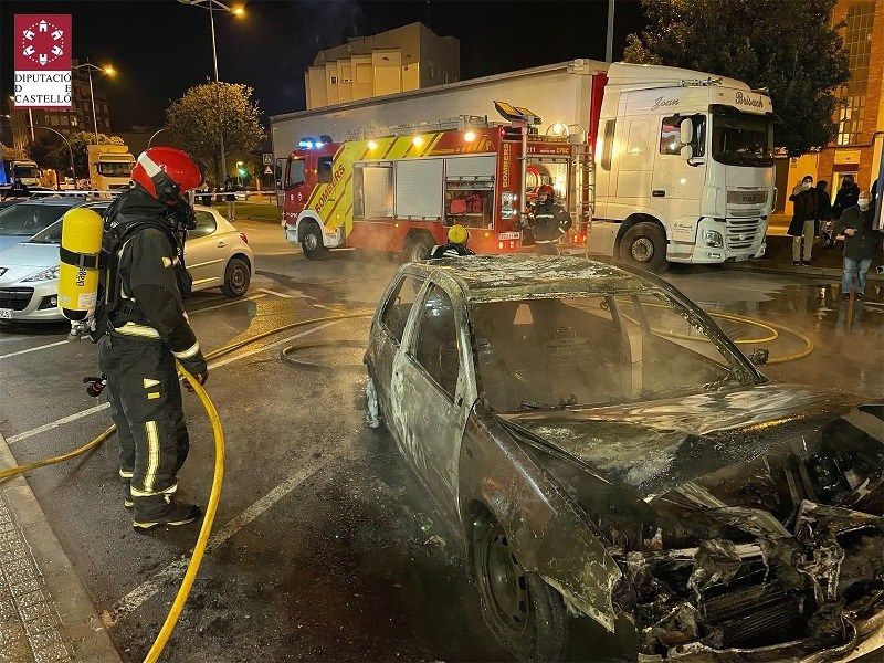 Una dotación del parque de bomberos de la Plana Baixa ha trabajado esta tarde en la extinción del incendio de un vehículo en la avenida Italia de Vila -real.