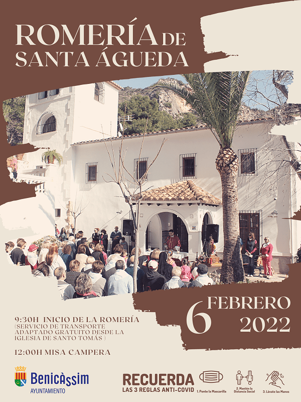 Benicàssim celebrarà aquest diumenge 6 de febrer la festivitat de Santa Àgueda amb la tradicional romeria. “Al cap d’un any de parèntesi, recuperem un de nostres més arrelats costums com és la d’acudir en romeria, el diumenge més pròxim al 5 de febrer, a l’ermita de Santa Águeda, on rememorem els nostres orígens, en un dia de convivència i germanor entre tots els veïns” ha comentat l’alcaldessa, Susana Marqués, qui ha continuat dient que “novament les mesures sanitàries marcaran el desenvolupament de la romeria i apel·lem a la responsabilitat individual a l’hora de participar garantint així la seua correcta celebració”.
