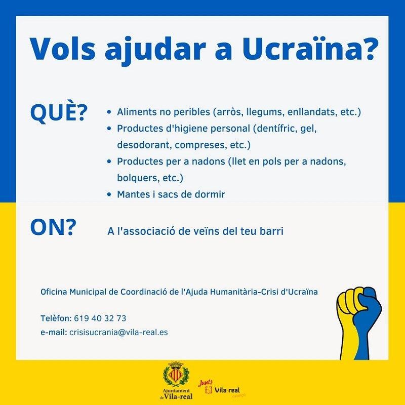 revistapoble.net > BLOG > ESPECIAL POBLE - GUERRA UCRANIA > El Ayuntamiento de Vila-real crea un protocolo para la recogida de ayuda solidaria a Ucrania a través de las AAVV