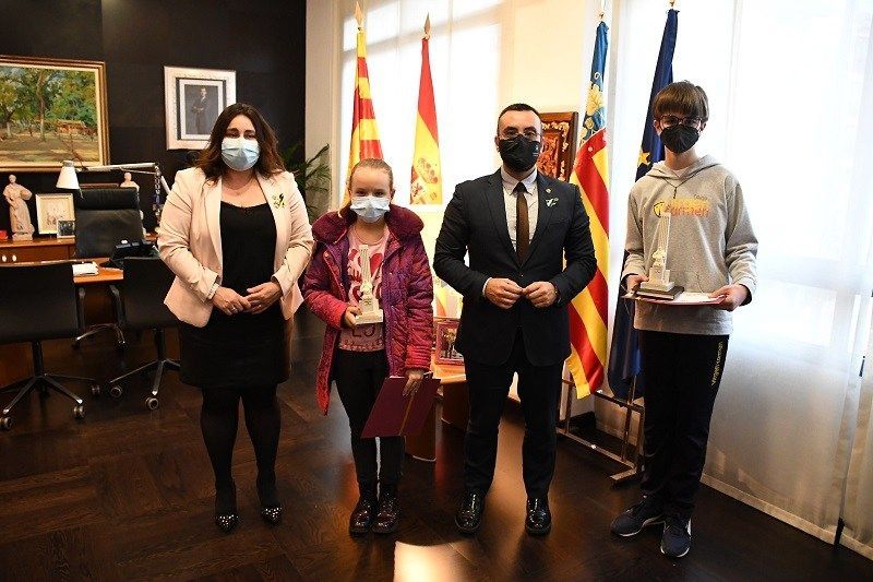 L’alcalde, qui acompanyarà dissabte que ve als vila-realencs en la constitució del Consell de la Infància, ha entregat als dos joves un diploma commemoratiu i una reproducció en 3D de l’escultura del rei Jaume I, obra del Fill Predilecte de la Ciutat Vicente Llorens Poy, en commemoració d’aquest assoliment.