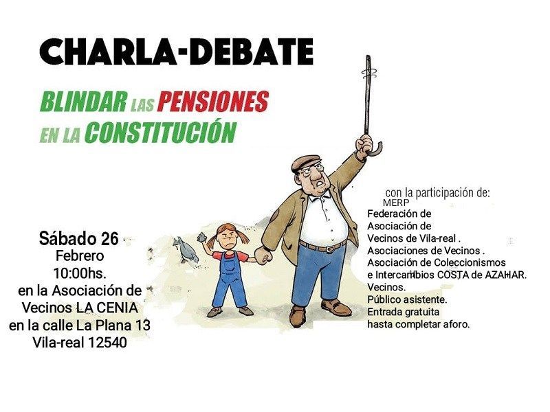 La Charla -Debate sobre «Blindar las pensiones en la constitución» llevada a cabo por Santiago Casal portavoz de la MERP, que culminó con la inclusión de la Federación de Asociaciones de Vecinos de Vila -real, en la Mesa Estatal por el Blindaje de las Pensiones.