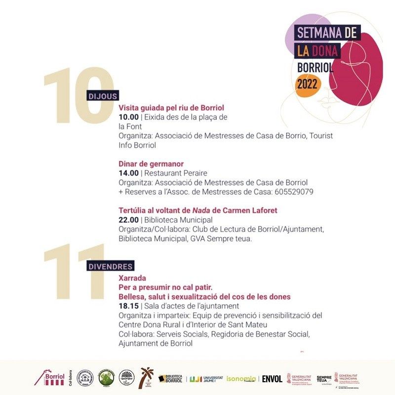 ???? Organitza/Col·labora: Associació de Mestresses de Casa de Borriol/Agenda Cultural i Esportiva, Tourist Info Borriol