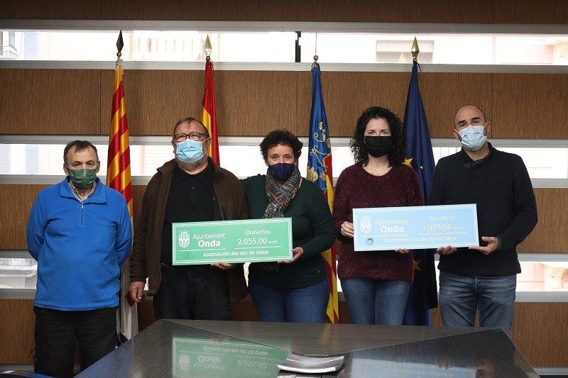 La alcaldesa de Onda, Carmina Ballester , y la teniente de alcalde y responsable del área de Cultura y Fiestas, María Prades, han hecho entrega de un cheque solidario a las entidades locales ONG Manos Unidas, Centro Ocupacional El Molí, Quisqueya ONGD y Riu Sec d’Onda. En total, los ondenses han recaudado 11.510 euros que ayudarán a las entidades sociales a poder seguir realizando sus actividades.