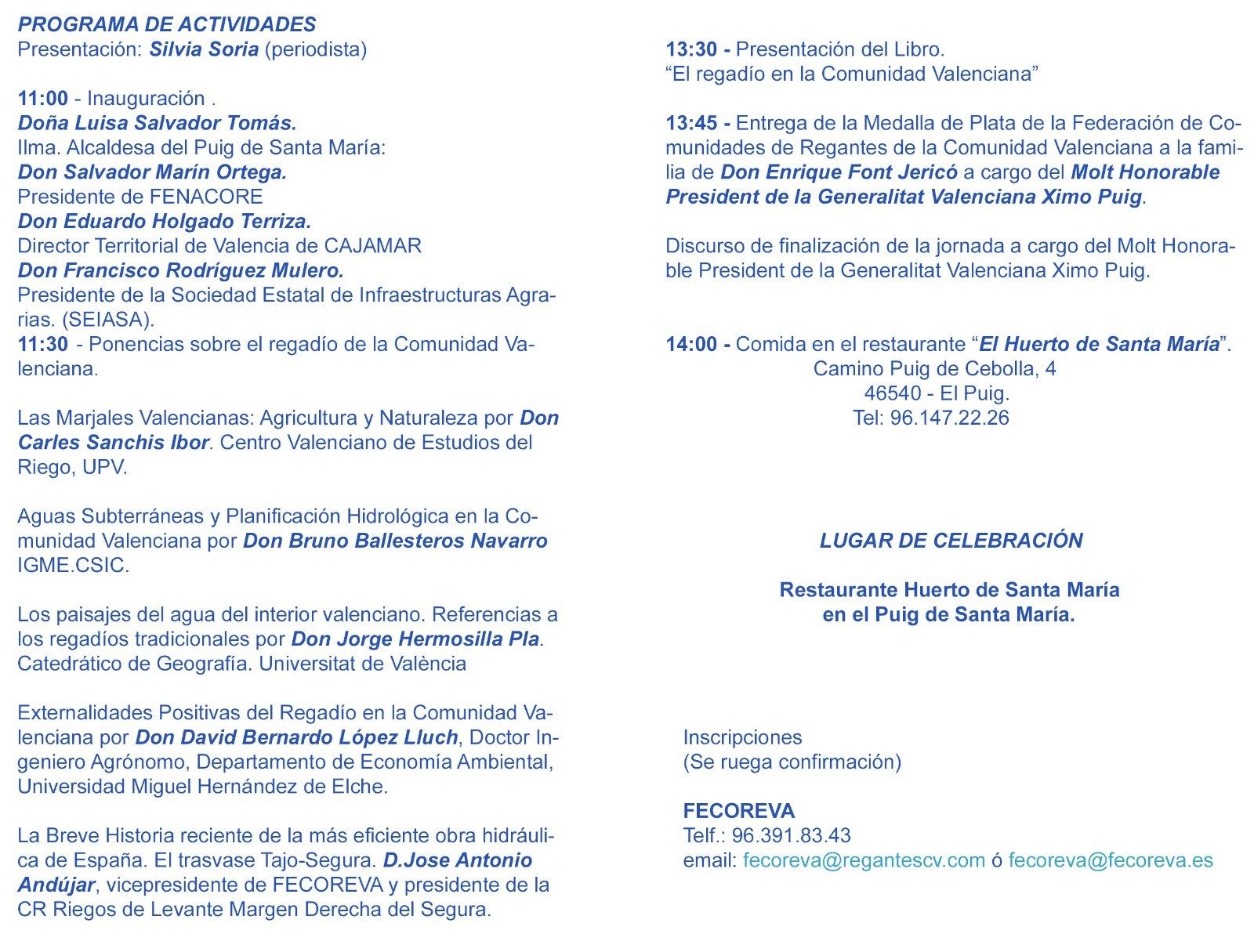 revistapoble.net > BLOG > INFORMACIÓ AUTONÒMICA > La Jornada ‘Día Mundial del Agua’ de FECOREVA rendirá homenaje a Enrique Font Jericó