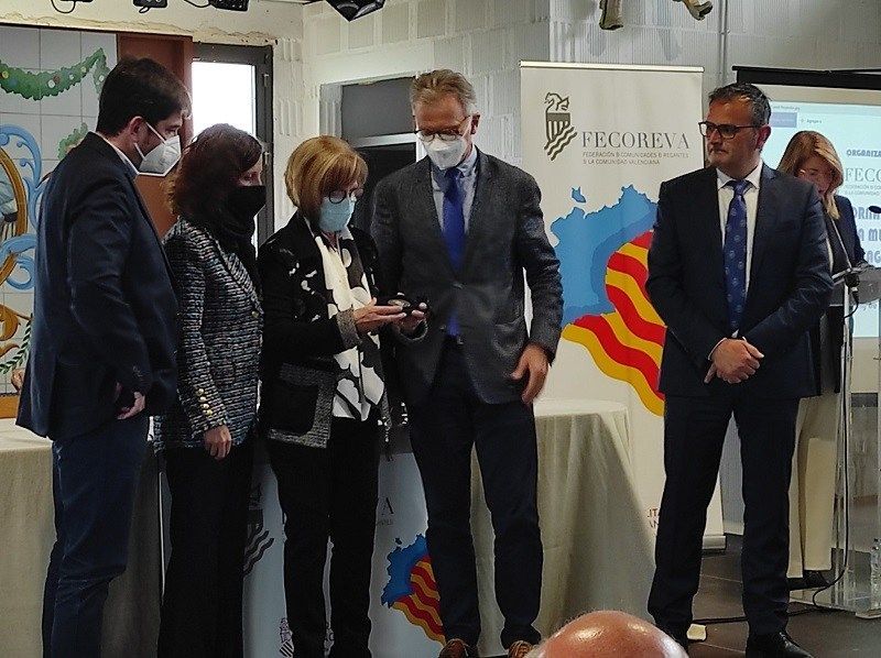 Durante la jornada Roger Llanes, Secretario Autonómico de Agricultura y Desarrollo Rural de la Generalitat Valenciana, hizo entrega de la Medalla de Plata de Fecoreva, a título póstumo, al expresidente de la entidad y redactor de POBLE Enrique Font Jericó, por su defensa del regadío, y que fue recogida por su familia.