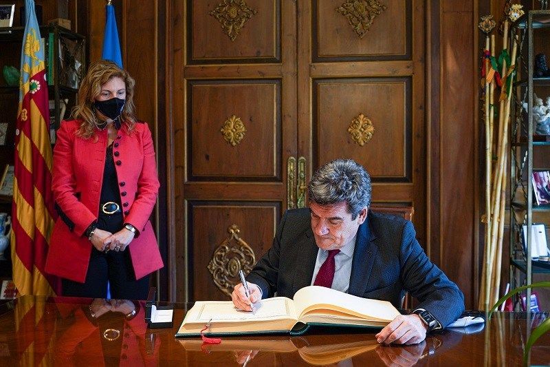 El ministre d’Inclusió, Seguretat Social i Migracions, José Luis Escrivá, ha realitzat aquest dijous una visita institucional a l’Ajuntament de Castelló on ha sigut rebut per l’alcaldessa, Amparo Marco, i per altres membres de la corporació. Durant la seua visita, han mantingut una breu trobada i el ministre ha signat en el llibre d’honor. Escrivá ha visitat Castelló amb motiu de la seua participació en la Càtedra Ciutat de Castelló, en la qual impartirà la conferencia ‘Reformes per a un creixement inclusiu’.