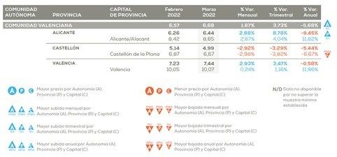 Según pisos.com, la vivienda en la Comunidad Valenciana en marzo de 2022 tuvo un precio medio de alquiler de 6,68 euros por metro cuadrado, cayendo un -5,68% en un año.