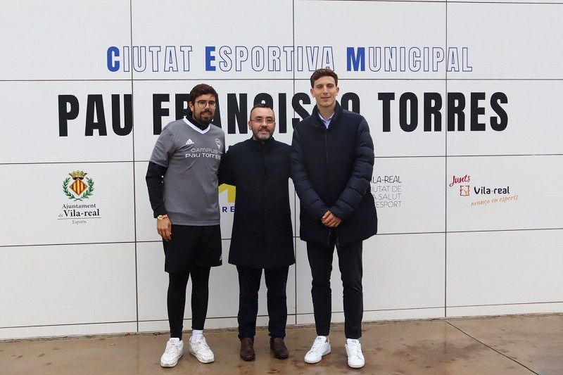 L’Ajuntament de Vila -real ha presentat aquest matí la nova denominació Ciutat Esportiva Municipal Pau Francisco Torres , en reconeixement als mèrits esportius del futbolista vila-realenc, jugador del Villarreal CF i de la Selecció Espanyola, així com per la seua implicació amb la ciutat a través de projectes com el campus de futbol que durant aquests dies se celebra precisament en la CEM. L’alcalde de Vila -real, José Benlloch, i el propi jugador han sigut els encarregats de descobrir la nova denominació de la Ciutat Esportiva Municipal Pau Francisco Torres –que compta amb la unanimitat de tots els grups municipals-, en un acte al qual també han assistit el president del Villarreal CF, Fernando Roig, el conseller delegat del club, Fernando Roig Negueroles, regidors de la corporació municipal, familiars de Pau Torres així com representants dels clubs esportius que utilitzen les instal·lacions de la CEM